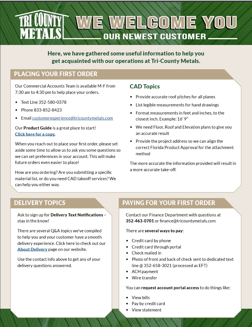 Brochures Click on an image to view / download the PDF. Ultra Rib 5V PBR TCM-LOK TCM-LOK Aluminim SL-LOK SS-LOK MS-LOK Panel Offer Sheet Product Guide Extended Warranty Go Aluminum Energy Efficient Facts Underlayment FlexPro Radiant Barrier Supervisor Checklist 6 Panel Brochure All Weather Defender First Order Info Tell Us About Your Project. Get StartedGet a Quote